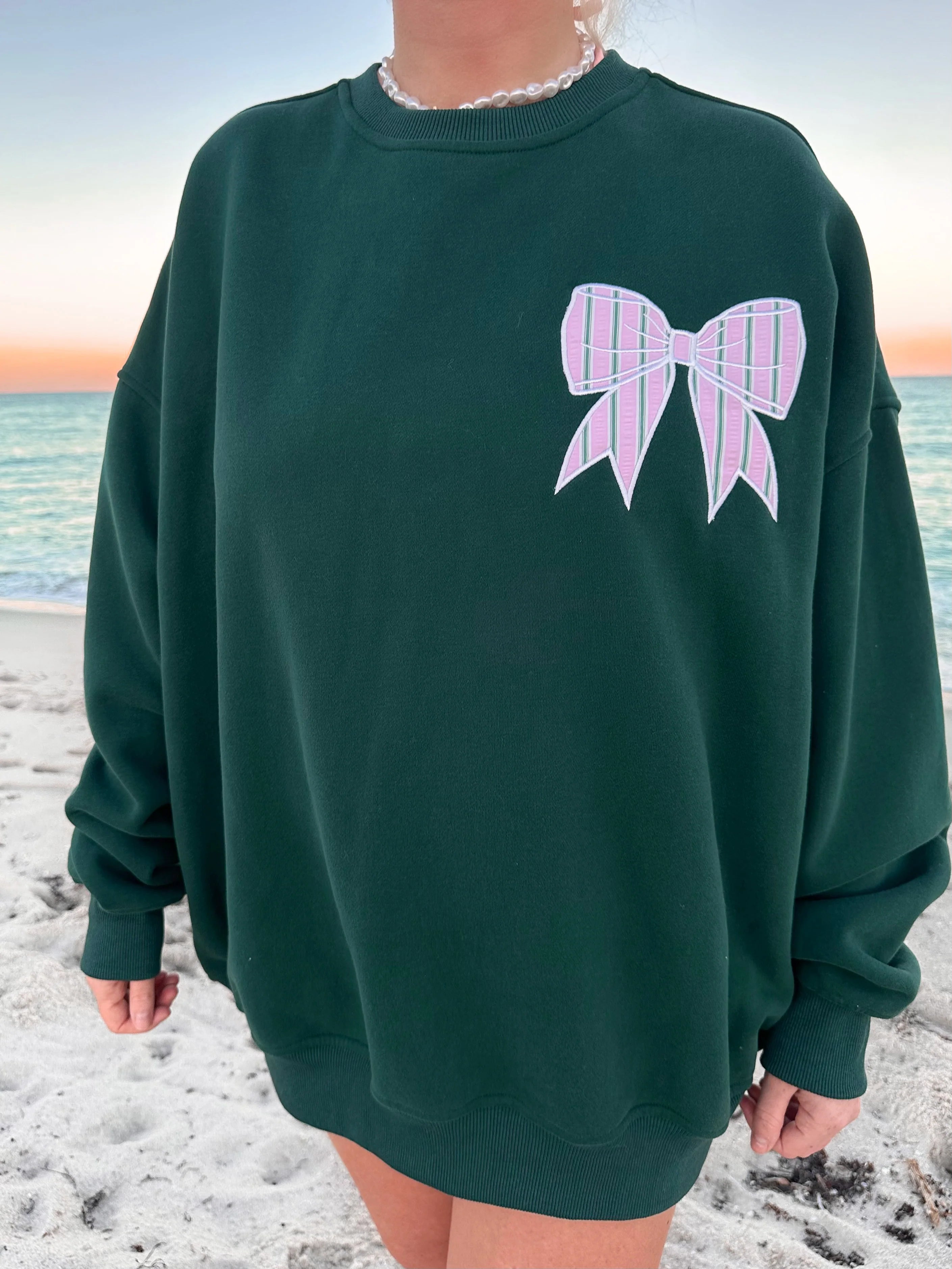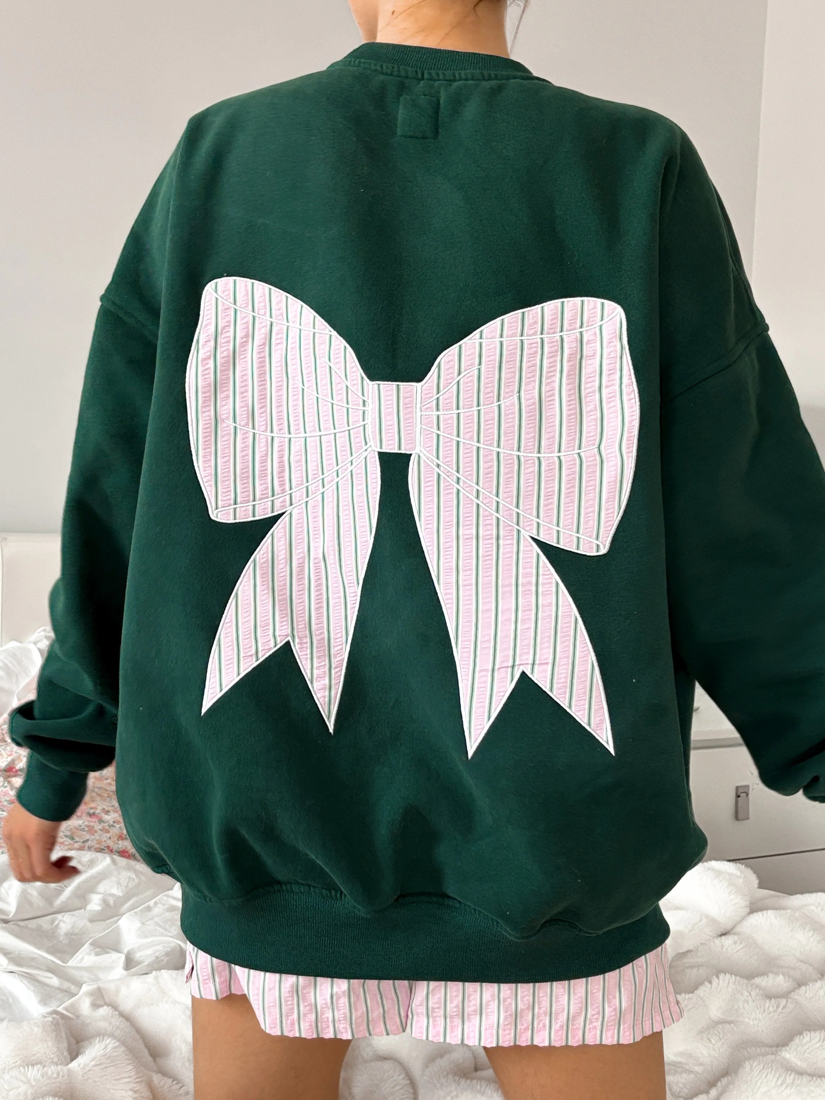 For this look, Nela is wearing a size Large sweatshirt and medium bottoms.